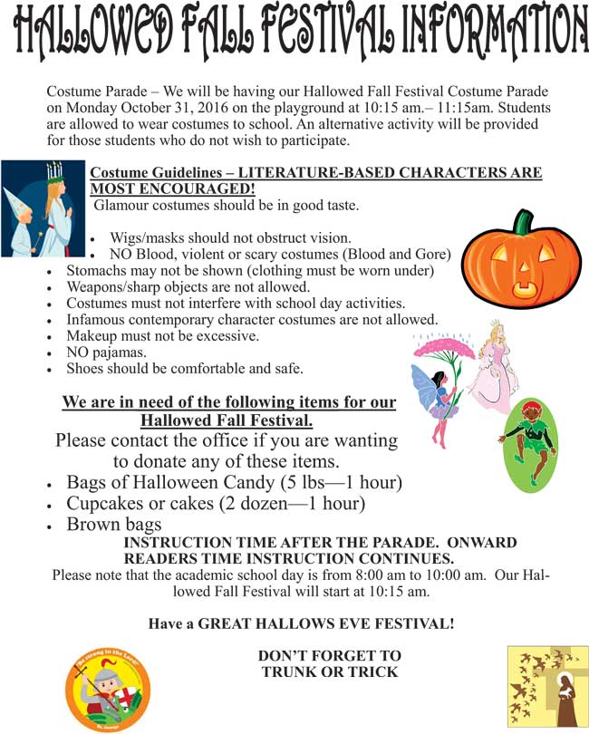 Please read the following Hallowed Fall Festival information flyers in preparation for the event, which will be held on October 31st.