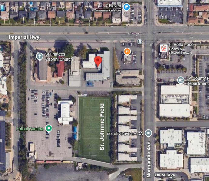 Sr. Johnnie Soccer Field is a regulation-size turf soccer and flag football field located in southwest Los Angeles, California. The field is open to all members of the community. Bleachers and a scoreboard are available. There are no lights provided for evening play. However, you can bring your own lights to set up.